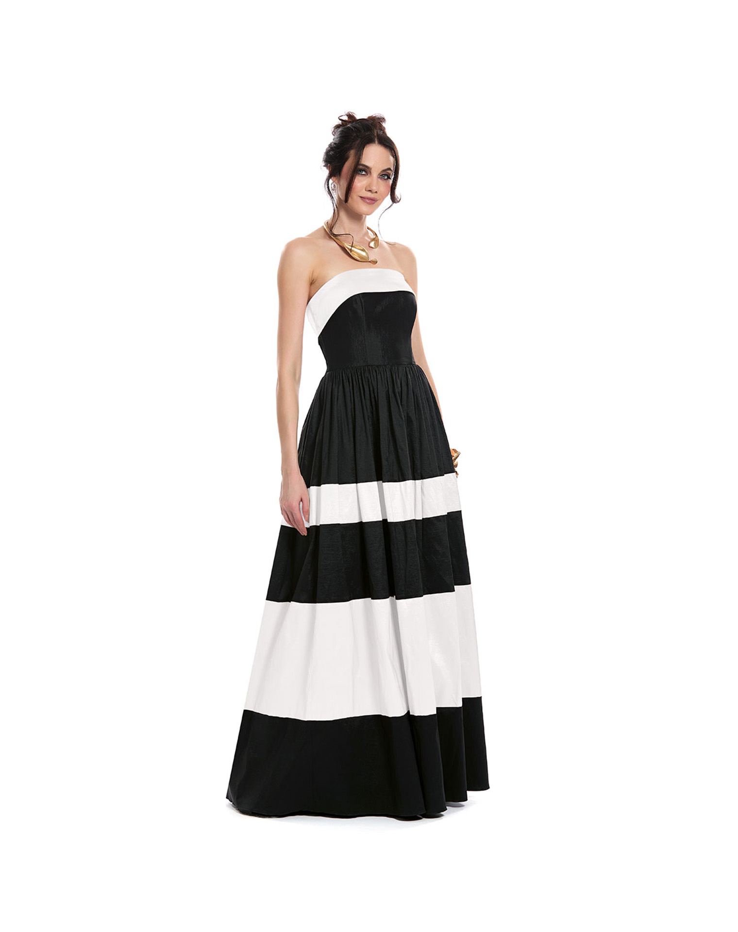 Marisol Vestido Largo Strapless Talle Drapeado Falda Plisada En Capas