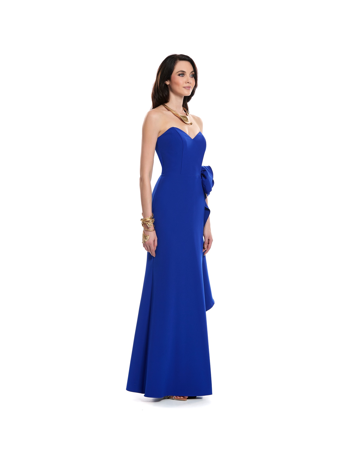 Kiara Vestido Largo Strapless Escote Corazón Falda Tipo Sirena Con Adorno De Flor Y Escarola