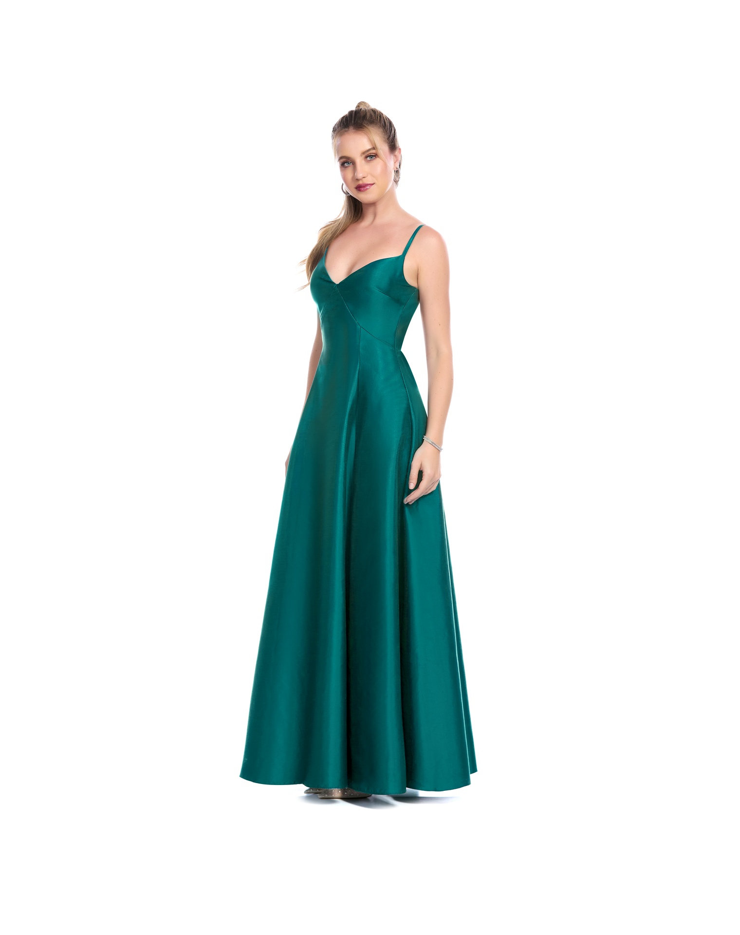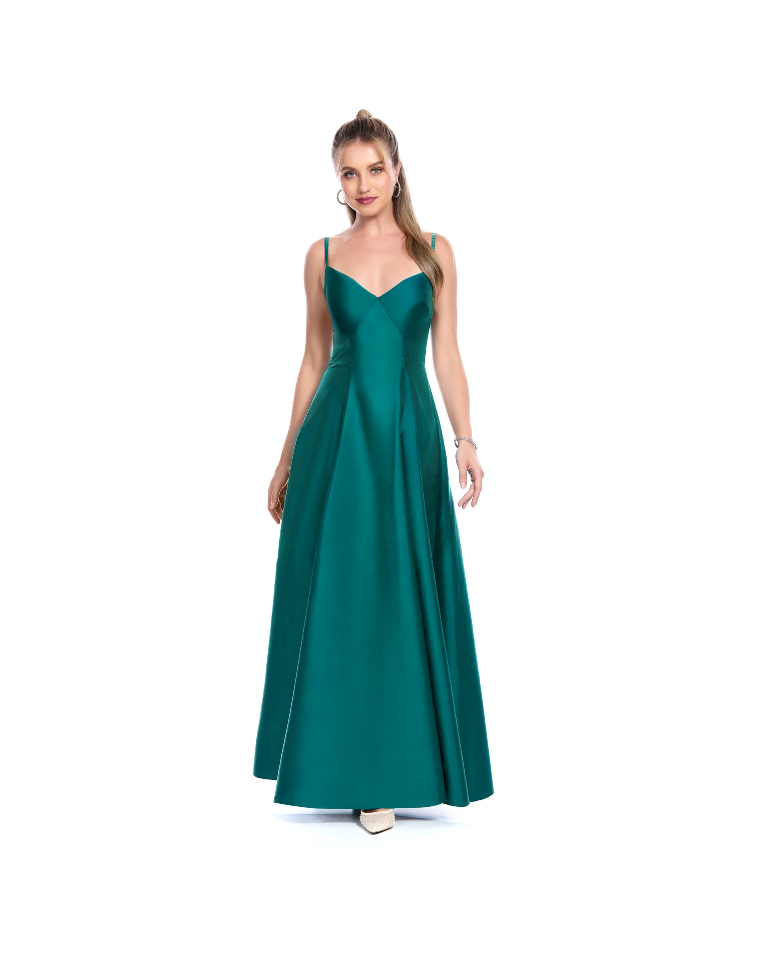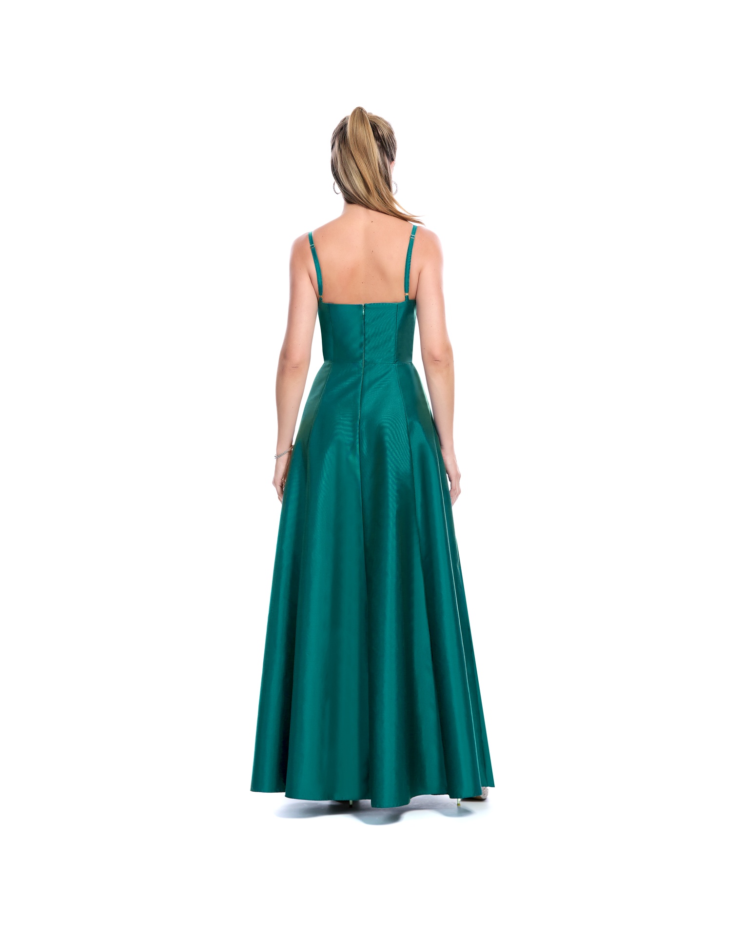 Vestido Largo Verde De Tirantes Escote V Y Falda Semicircular