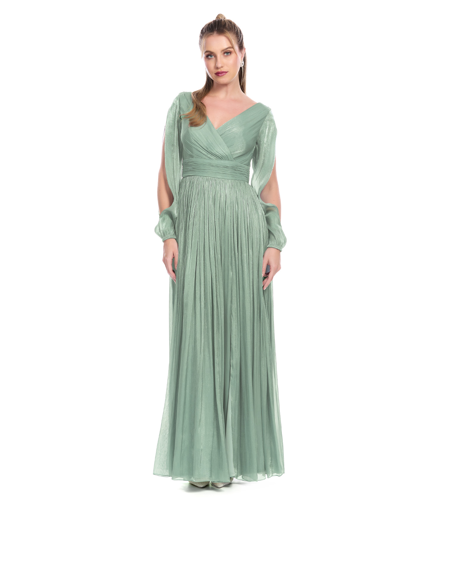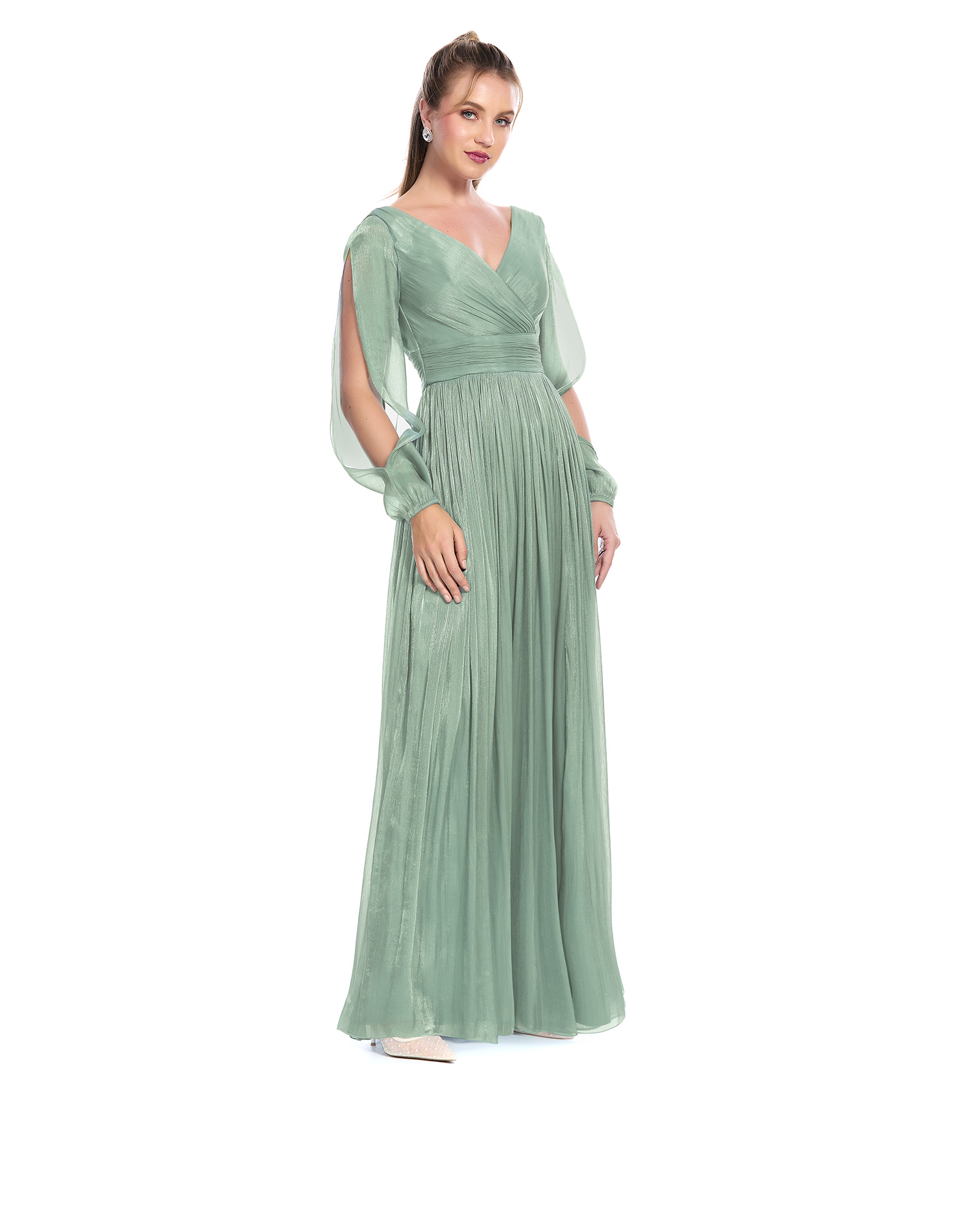 | Diseño | Abertura en falda, Drapeado, Pliegues en falda, Escote V, Manga larga |
