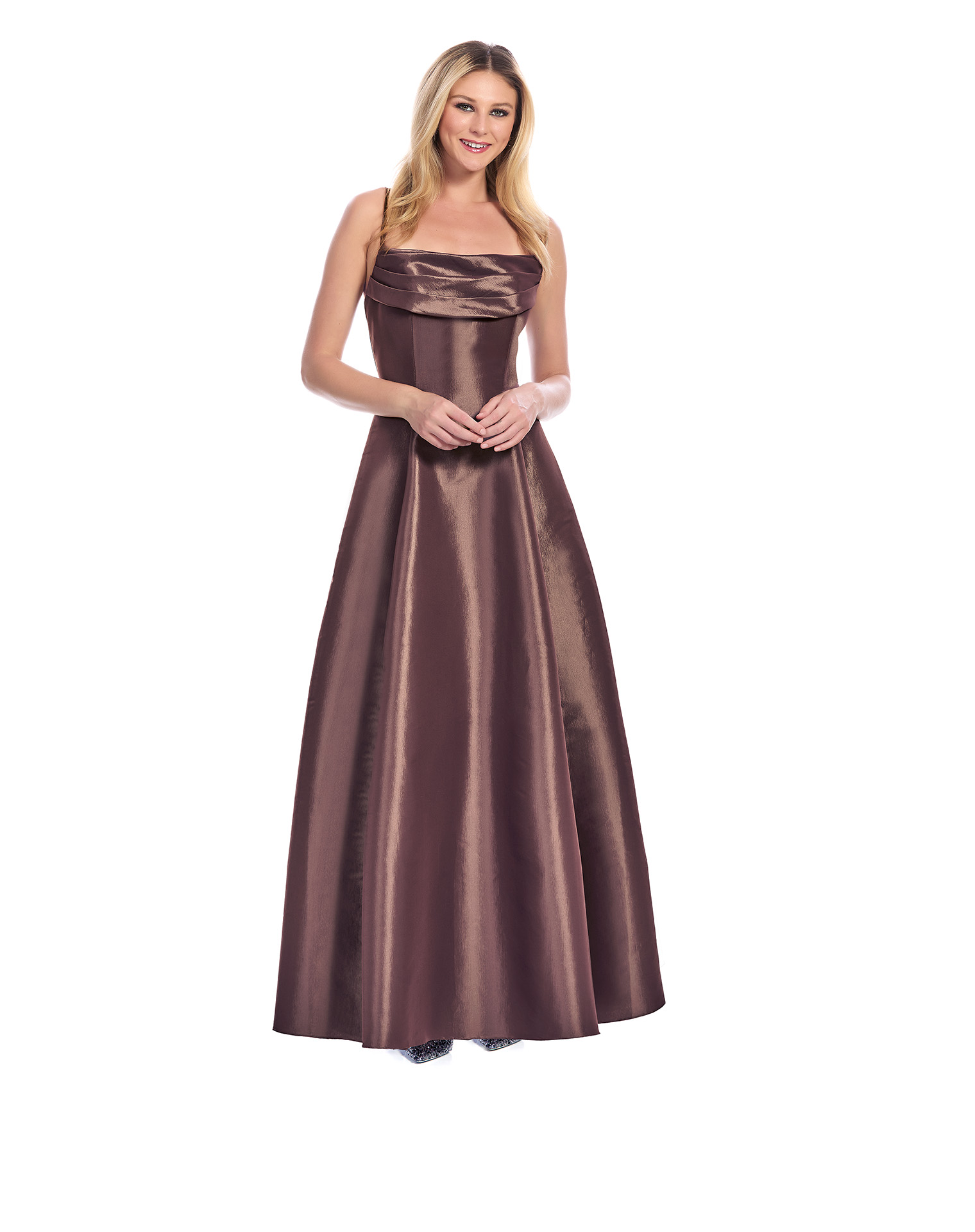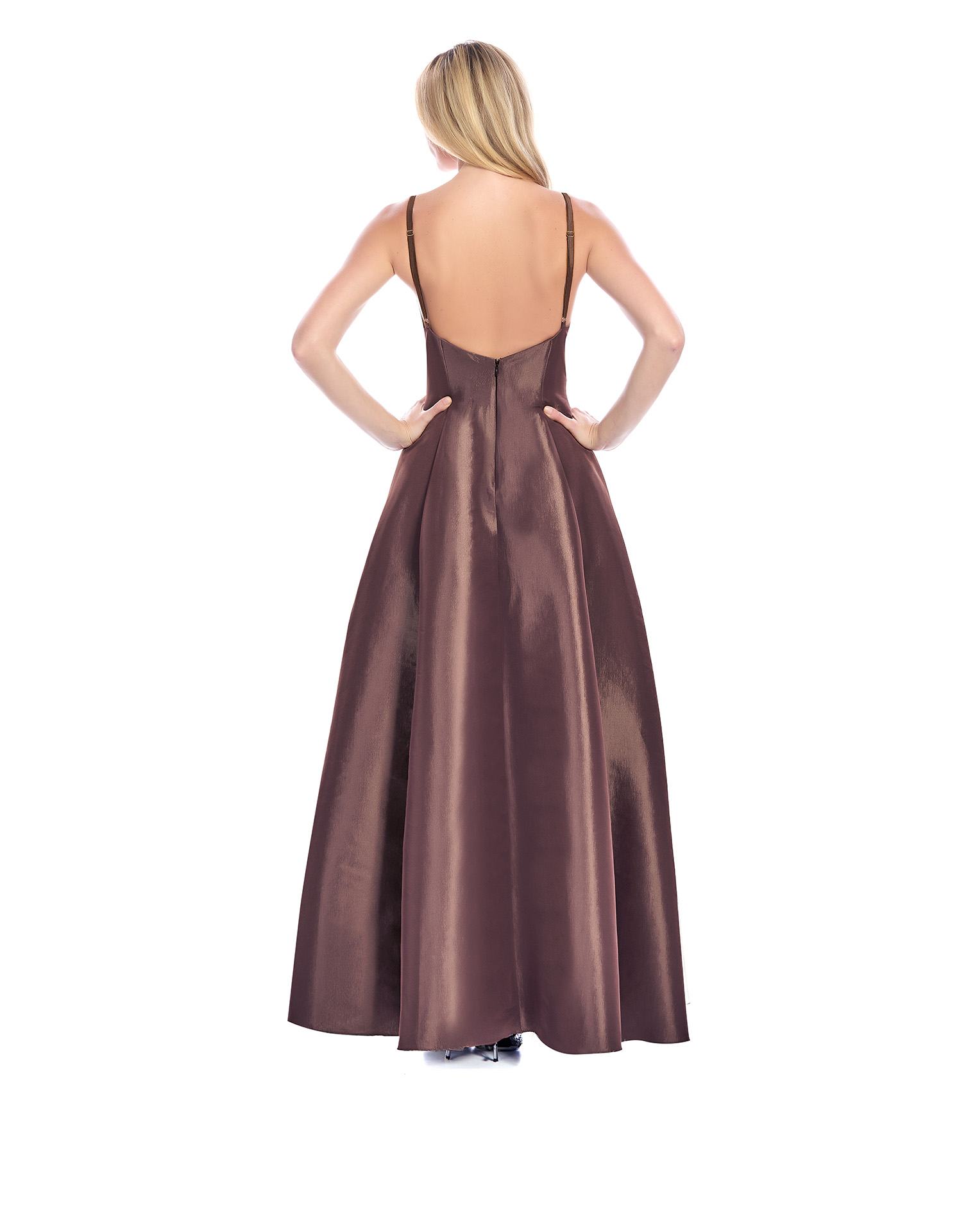 Vestido Largo Cafe De Tirantes Escote Columpio Con Falda Semicircular