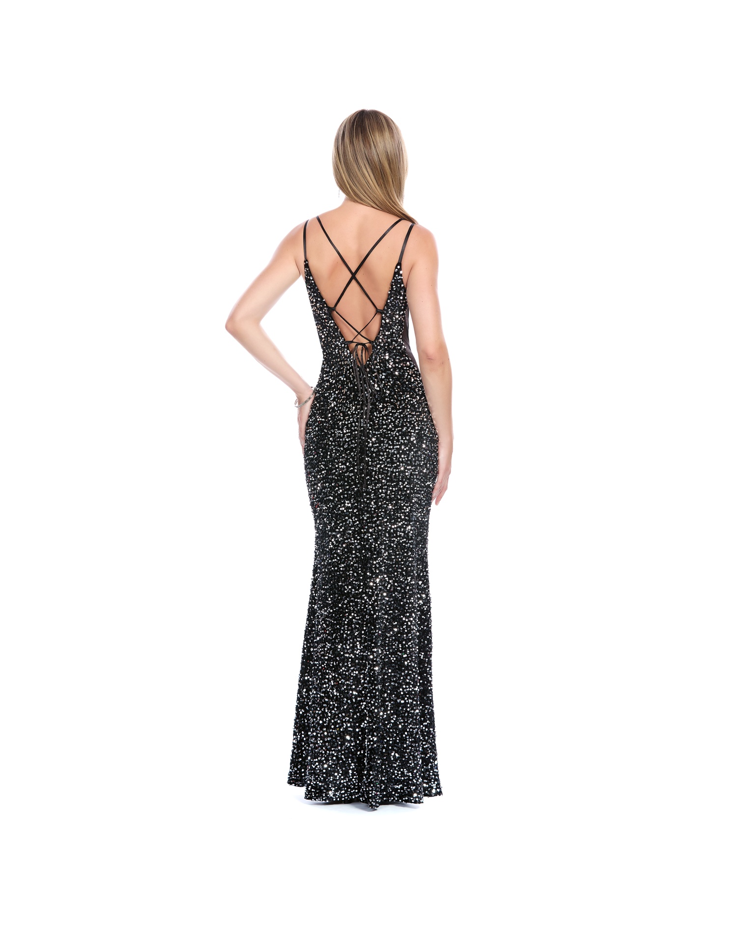 Vestido Largo Negro De Tirantes Escote V Con Transparencia Jaretas En Espalda Falda Tipo Sirena