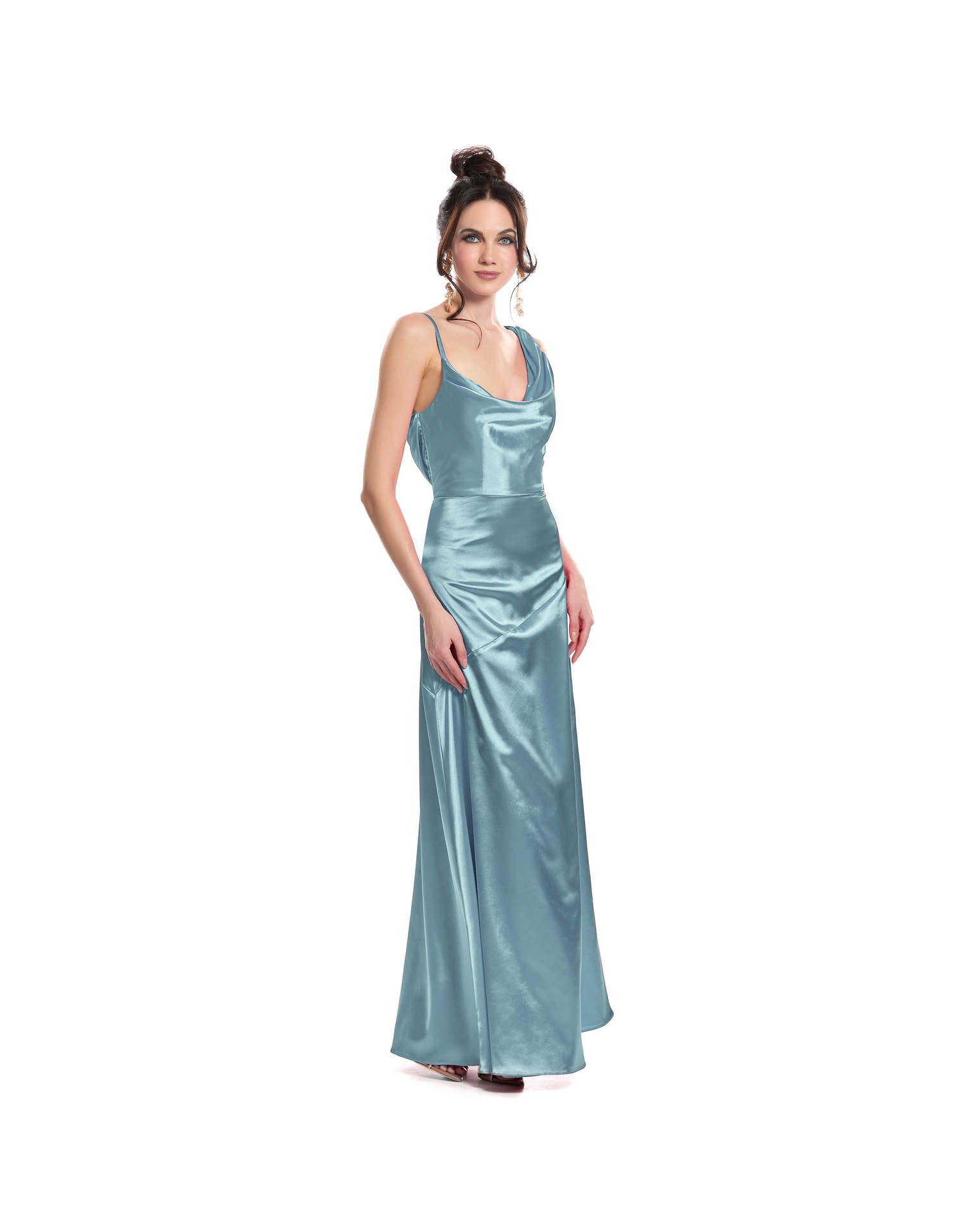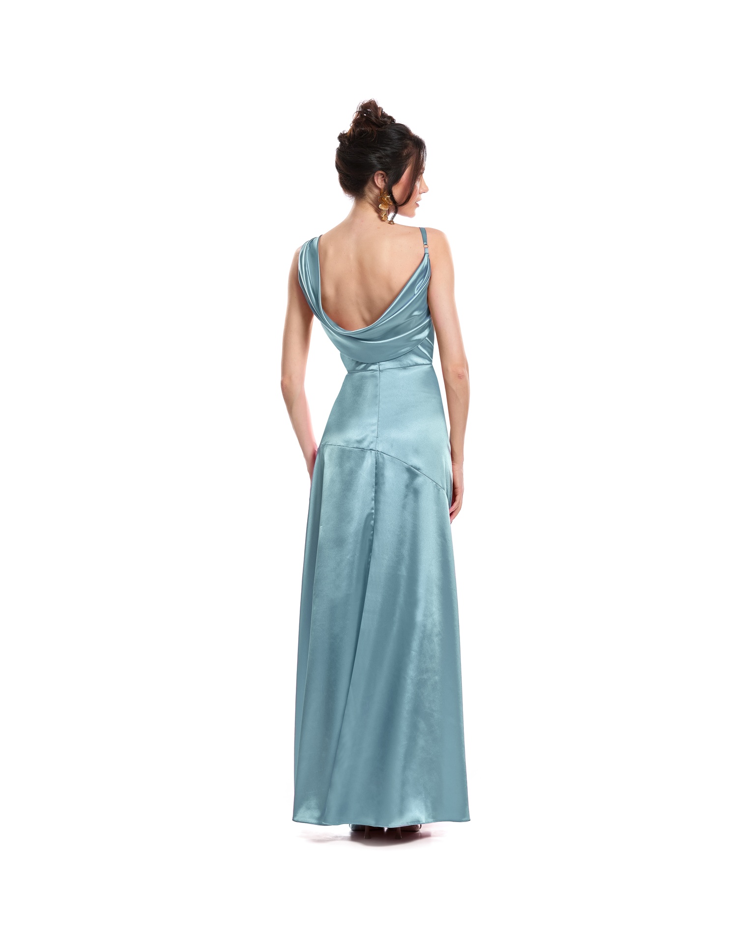 Vestido Largo Azul Escote Columbio Con Tirantes Corte En Falda