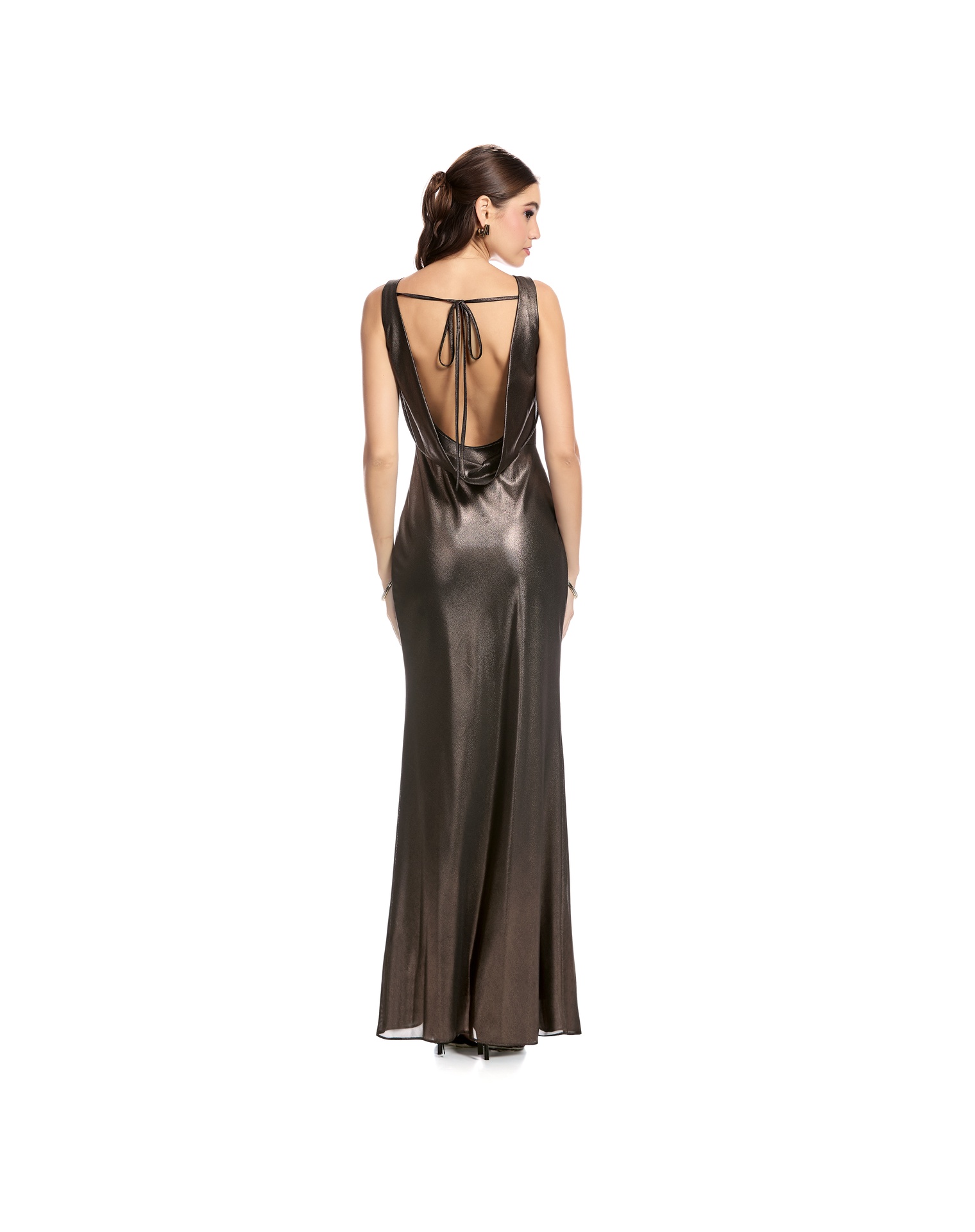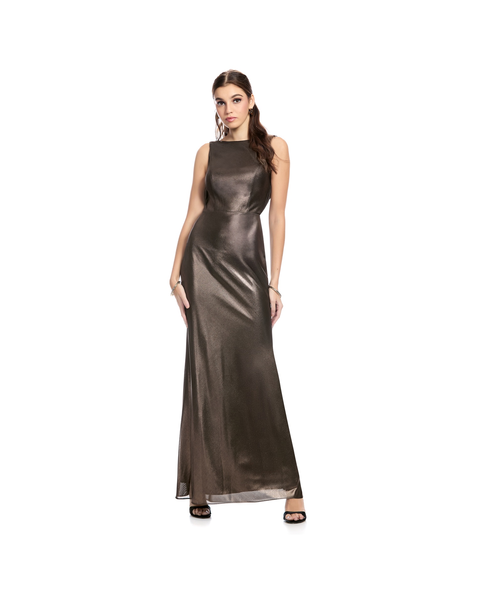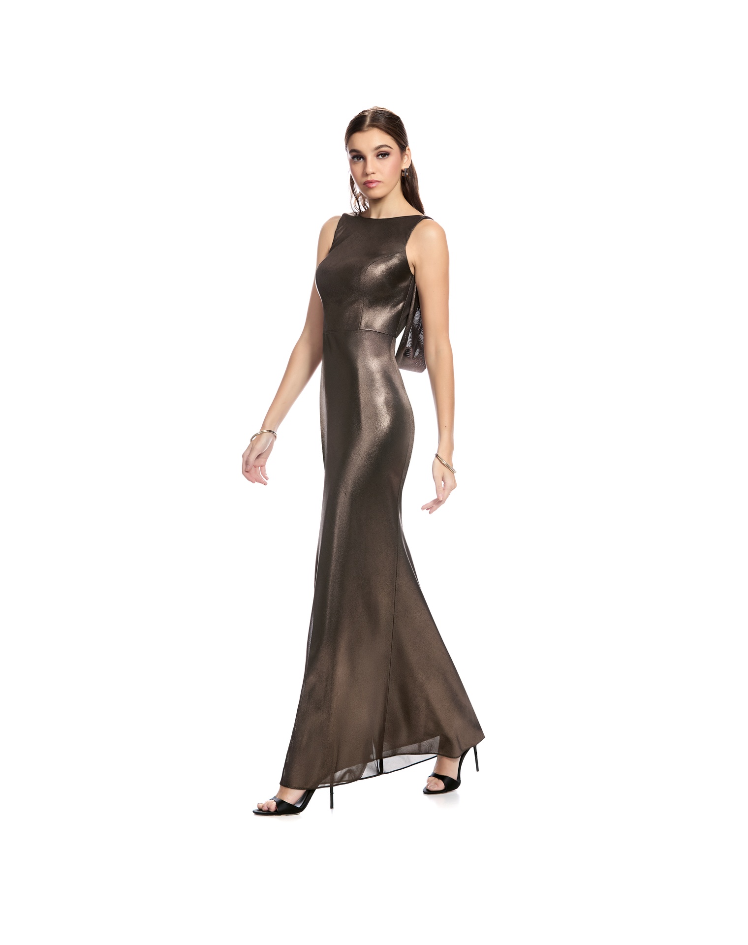 Vestido Largo Cafe Escote Redondo Con Espalda Tipo Columpio Falda Tipo Sirena